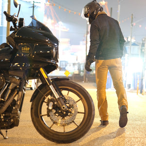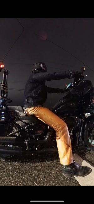 After seeing how that jacket has worn in, oh baby ! We knew we needed to make a pant using that leather. .
