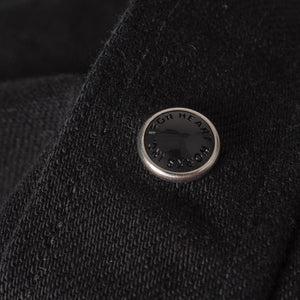 ‘The Man in Black’ is again the inspiration for this black denim western shirt, AKA ‘The Johnny Cash lll’. The 12oz black selvedge denim will fade slowly with age and wear, developing profound character, and ensuring this classic shirt will stay looking fantastic with age and lots of wear.