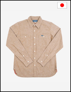 Our classic work shirt design, made in Japan from a traditional selvedge chambray. Finished with white cat's eye buttons and double needle stitch construction throughout.