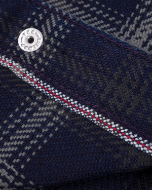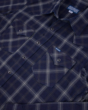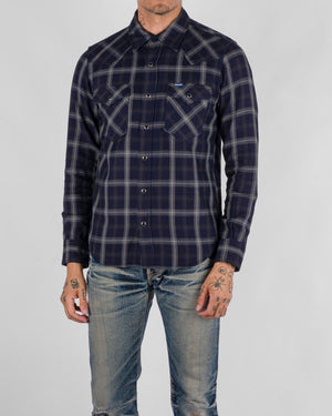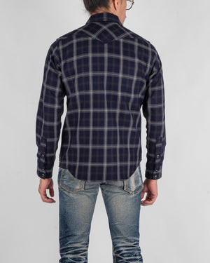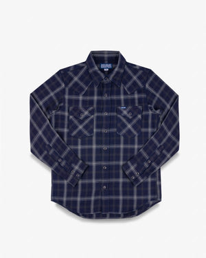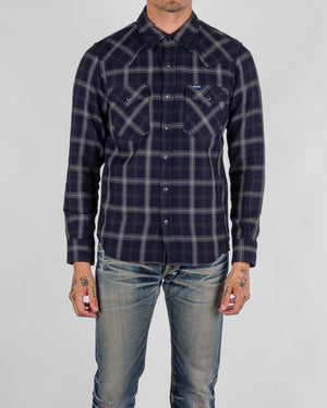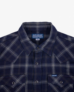 Offering a lighter weight alternative to our signature Ultra Heavy Flannel (UHF) shirts, our 9oz selvedge unbrushed flannels provide classic Iron Heart styling in a cooler, more breathable option for the warmer months. This season’s shirts feature a timeless check pattern, seen here in our western cut with a black/indigo colourway. Slowly woven to increase heft and texture, the darkest yarns in the pattern are indigo dyed while the lighter shades are sulphur cheese-dyed to allow for natural fading over time. With only four shuttle looms in Japan capable of producing this intricate pattern (which requires switching the weft yarn mid-weave), our SS25 shirts are some of the most unique Japanese-made flannels available this season.