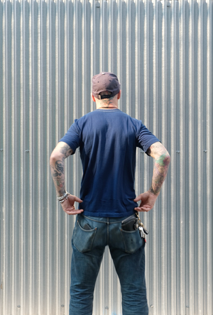 the Utilitees 5.5oz Pure indigo dyed white crew neck t shirts are sold to us though Ironheart Uk.