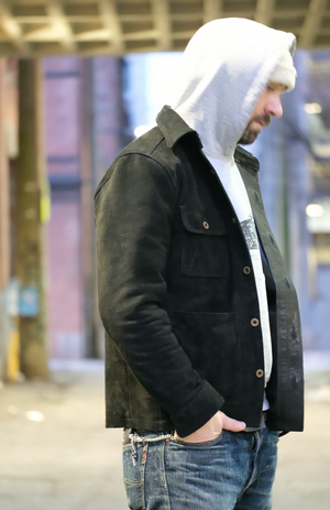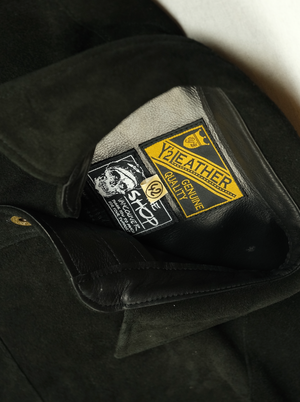 Using the same insanely supple steer hide of the SS-13 Western, we wanted to make our version of their work shirt, and combine it with the aesthetic of a classic chore coat to make the perfect chopper riding, chopper workin, life livin jacket we could think of