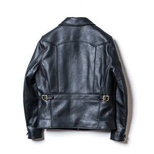 It is made of sumi dyed horse with a saddle core, and even if the leather peels off, the color will change by adding oil or baking, making it a piece of clothing that can be enjoyed as it ages.