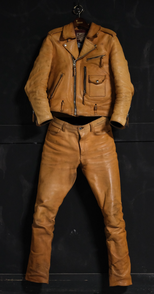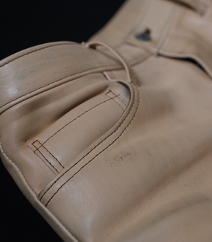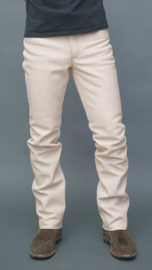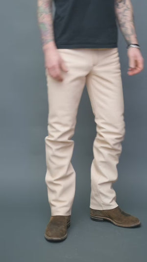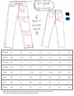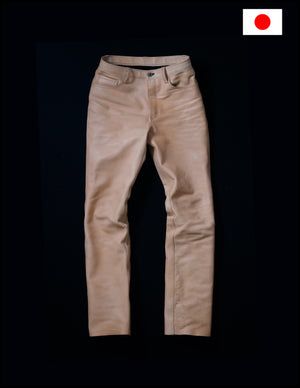 The classic 5 pocket, cotton lined, straight leg pant, made from the same 1.3mm saddle horse hide we used on our NH-55 double riders jacket