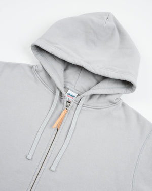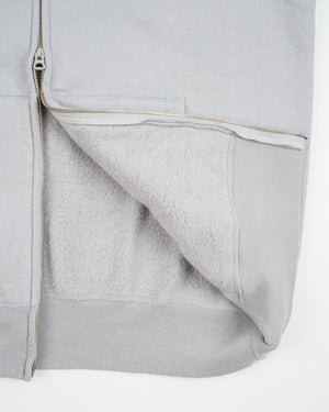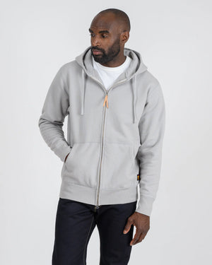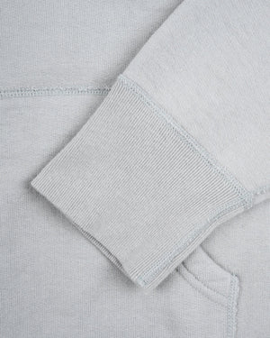 The ultra heavy loopwheel fleece we use for all of our sweatshirts is woven in Wakayama and weighs in at a massive 14oz. This Hoodie is super windproof and is constructed using four needle Union Special flat stitched seams. Finished with front pouch pockets, a 2-way Universal zipper, and adjustable hood