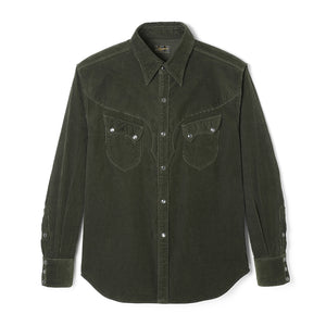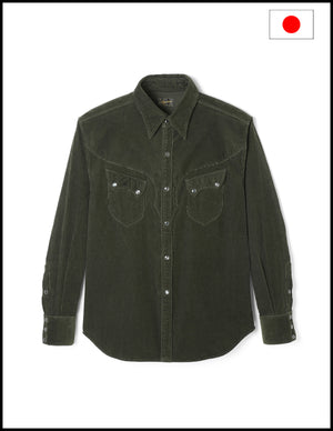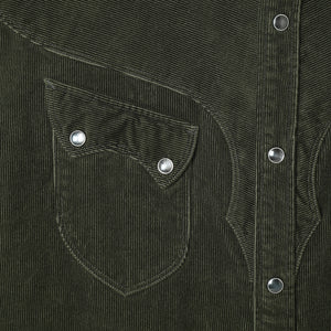 The 16-wale fine corduroy fabric is known for its subtle sheen and unique texture, making it a high-quality material. It pairs well with the distinct design of Western shirts, offering a classic yet timeless appearance.