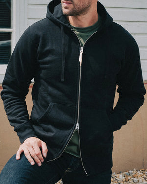 Iron Heart IHSW-10-BLK 14oz Ultra Heavyweight Loopwheel Cotton Zip Up Hoodie – Black