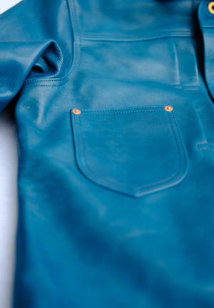 Our Western Cowboy 2 exclusive collaboration jacket, uses an insanely supple 1.5mm aniline, Indigo washed Horsehide.