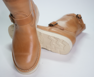 We chopped the classic 10" engineer boots down to 8" and swapped out the sole for the 4014 natural sole, which is perfect for absorbing a lot of the excess vibrations when riding motorcycles.