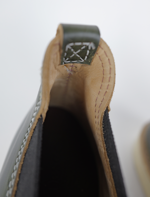 Welcome to The Shop Romeo in our Horween CXL olive green leather.