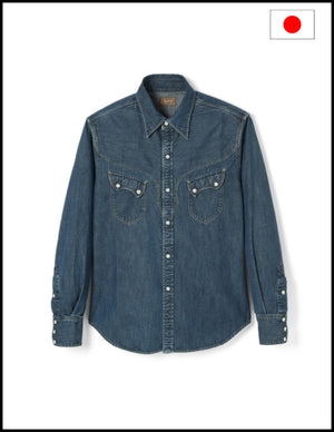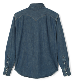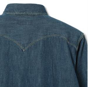 This is an updated version of our standard western shirt, the Cody. It is now more comfortable to wear than the tight silhouette of the past, with more room in the body, shoulders, and neck. It is an original western shirt that has evolved in comfort by reviewing the silhouette and size while keeping the characteristic design such as the front yoke and the wing-shaped back yoke with the image of a buffalo horn.