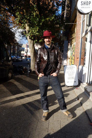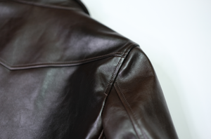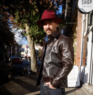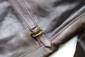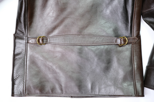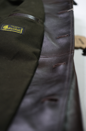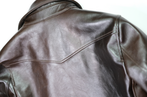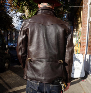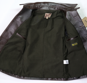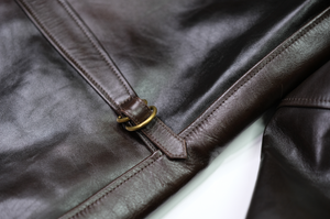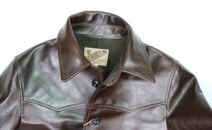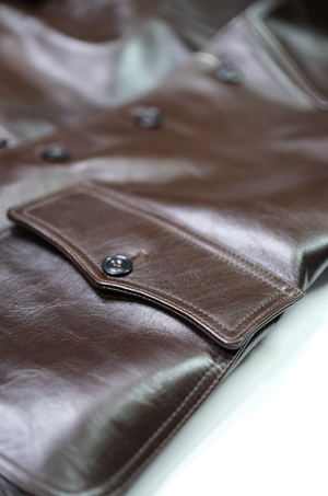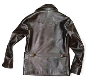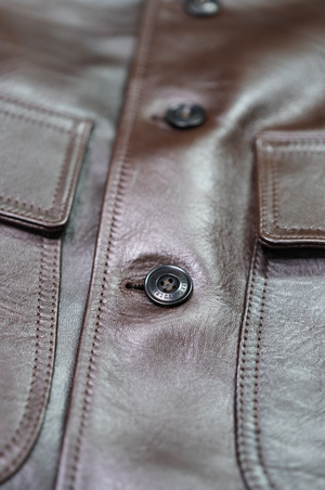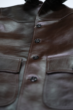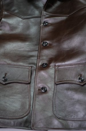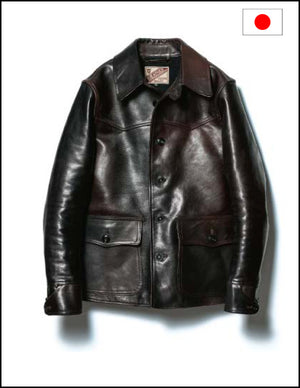 A car coat using a horsehide that has been carefully hand-dyed with a tanner on leather that has been tanned with full vegetable tanned over time .