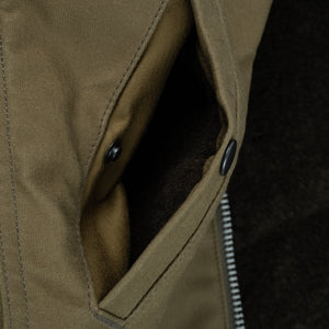 An oiled version of our popular N1, giving improved water-resistance to the jacket. Due to the nature of whipcord and its reluctance to absorb, the heavy oiling of the fabric increases its weight from our standard 12oz to approximately 14oz.